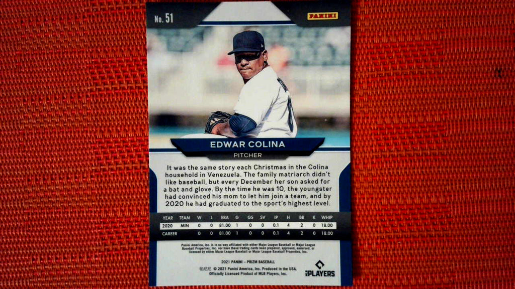 2021 Panini Prizm Baseball Base #51 Edwar Colina-Rookie