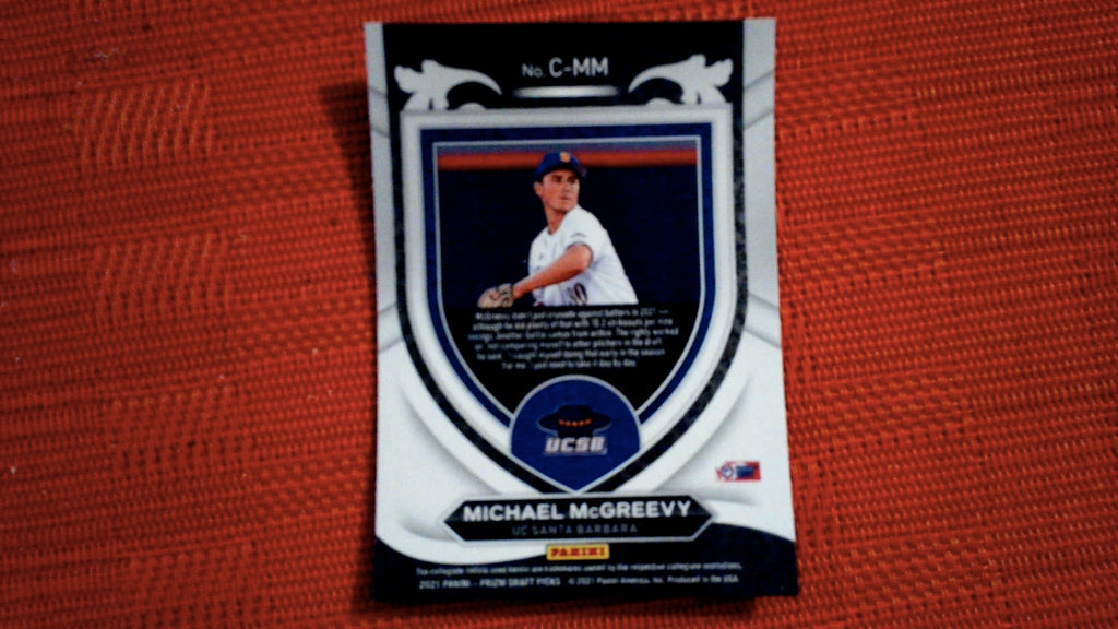 This is a nice example of a 2021 Panini Prizm Draft Picks #C-MM Michael McGreevy Crusade.