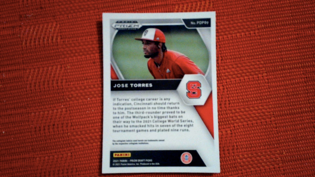 This is a nice example of a 2021 Panini Prizm Draft Picks #PDP89 Jose Torres .