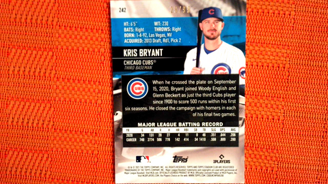 2021 Stadium Club Chrome Kris Bryant Orange Refractor Numbered to /99 Cubs