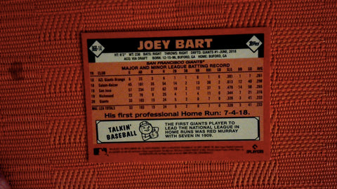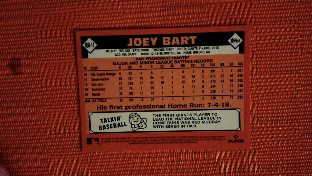 This is a nice example of a 2021 Topps #86B-14 Joey Bart 1986 Baseball 35th Anniversary (Series 2).