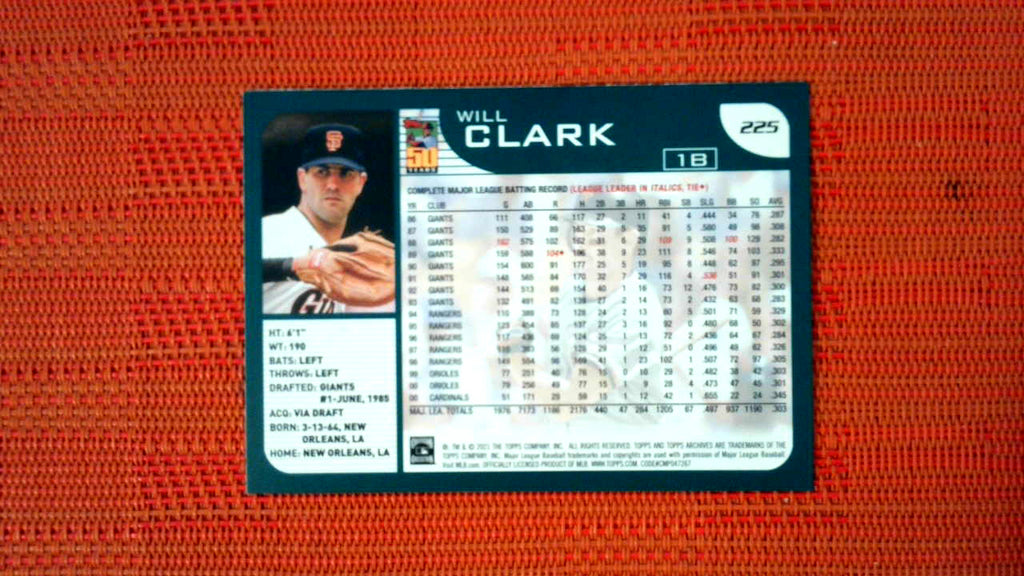 2021 Topps Archives #225 Will Clark