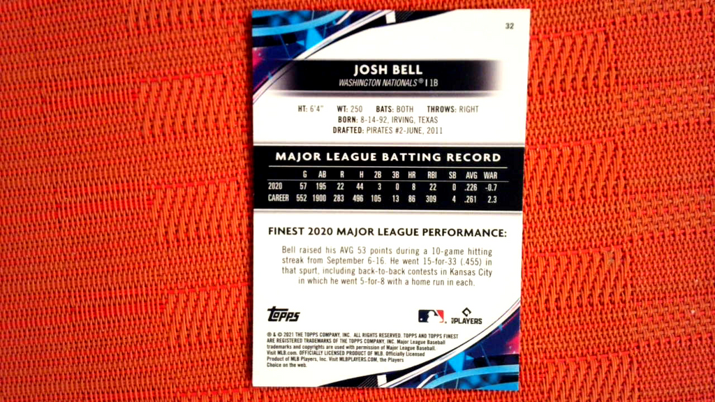 2021 Topps Finest #32 Josh Bell- Washington Nationals