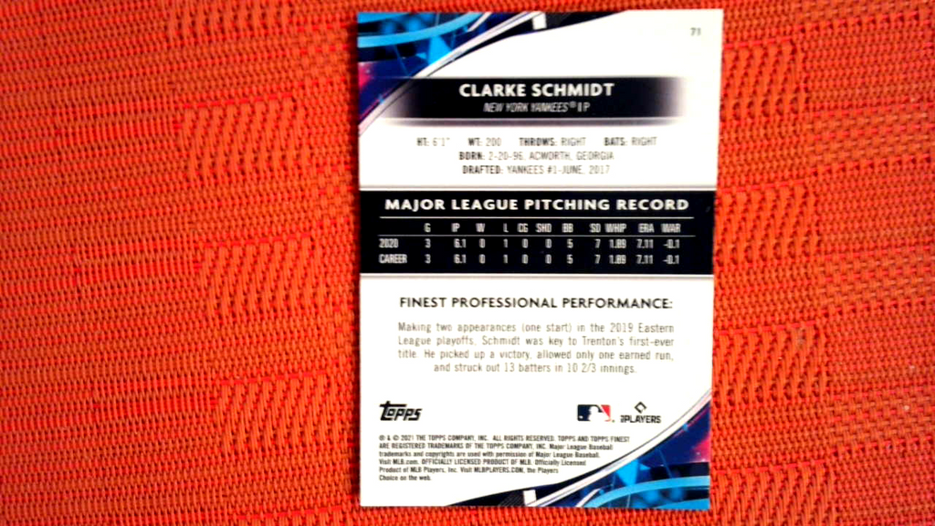 2021 Topps Finest #71 Clarke Schmidt- New York Yankees