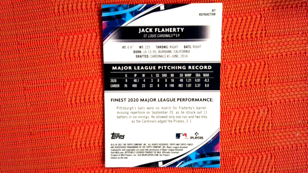 2021 Topps Finest Refractor #87 Jack Flaherty- St. Louis Cardinals
