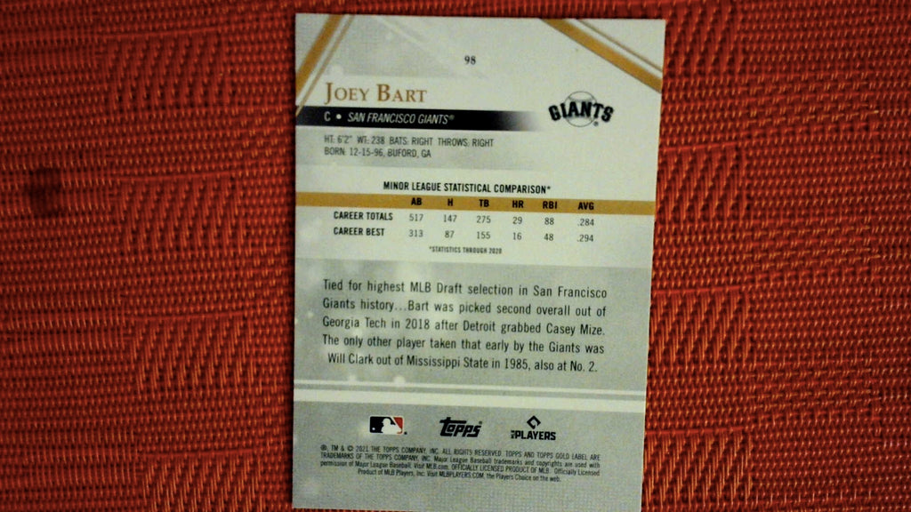 This is a nice example of a 2021 Topps Gold Label #98 Joey Bart .