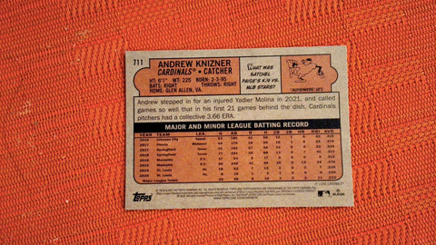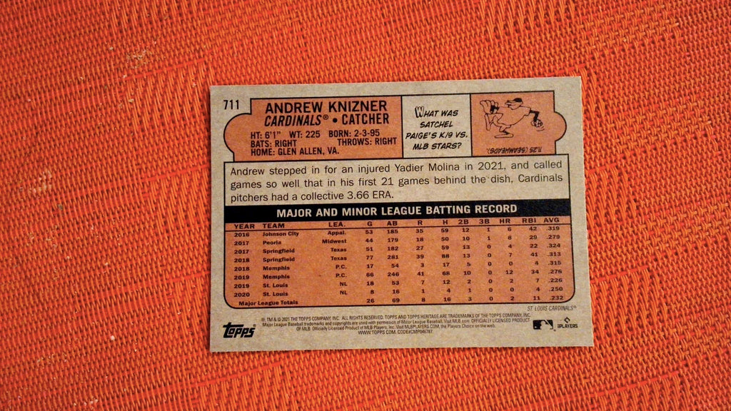 This is a nice example of a 2021 Topps Heritage #711 Andrew Knizner .