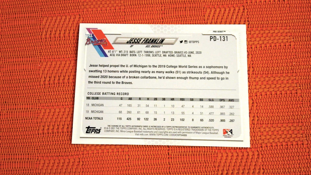 2021 Topps Pro Debut Auto #PD-131 Jeese Franklin Baseball
