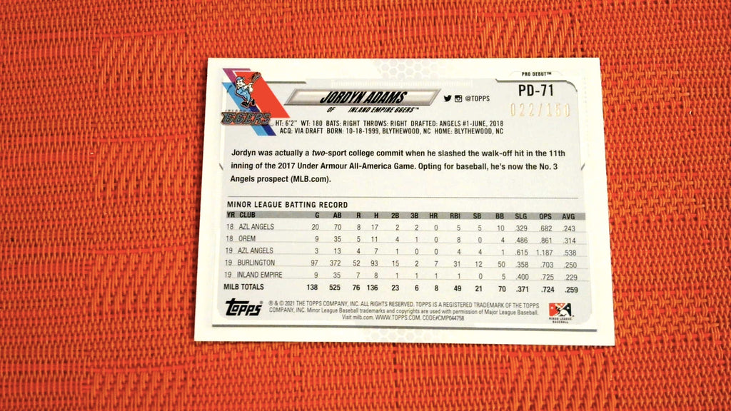 2021 Topps Pro Debut Blue #PD-71 Jordyn Adams 22/150 Baseball