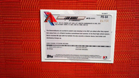 2021 Topps Pro Debut #PD-64 Liam Norris Auto Gold /50