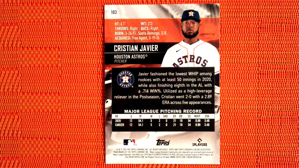 2021 Topps Stadium Club Red Foil #103 Cristian Javier
