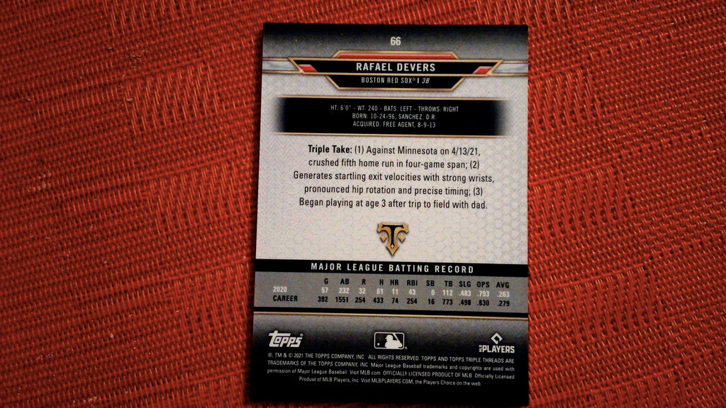 This is a nice example of a 2021 Topps Triple Threads #66 Rafael Devers .
