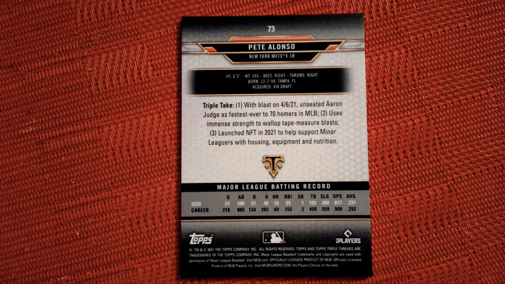 This is a nice example of a 2021 Topps Triple Threads #73 Pete Alonso .