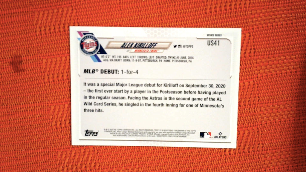 This is a nice example of a 2021 Topps Update #US41 Alex Kirilloff .