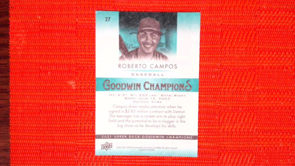 This is a nice example of a 2021 Upper Deck Goodwin Champions #27 Robert Campos .