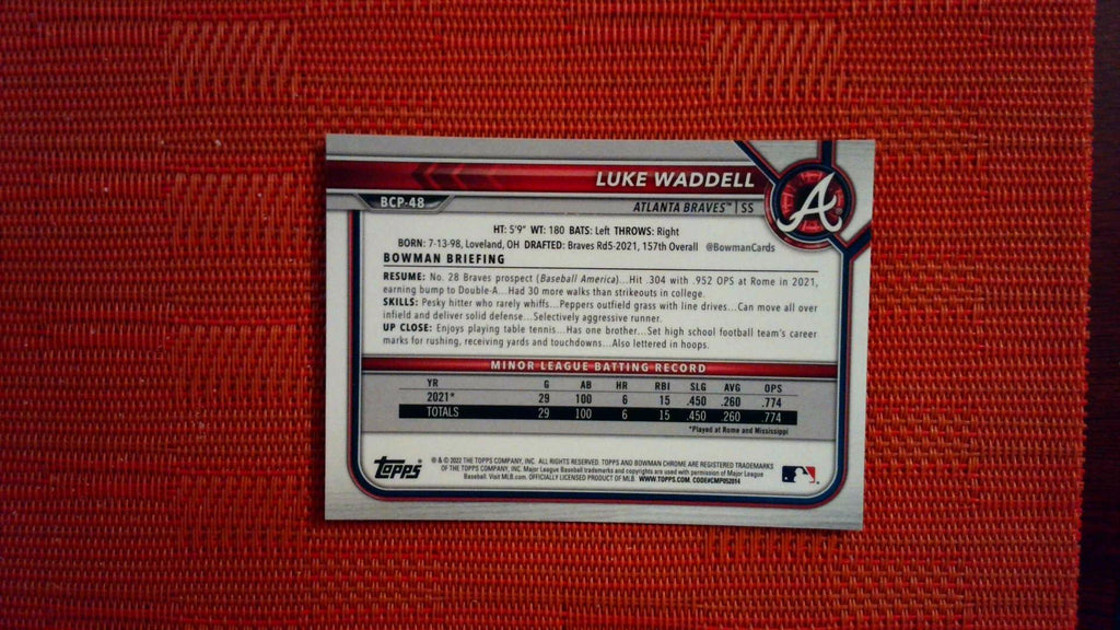 2022 Bowman Base Chrome Mega Box Mojo #BCP-48 Luke Waddell Baseball
