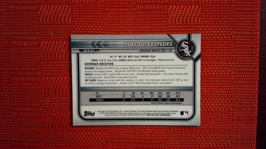 2022 Bowman Base Chrome Mega Box Mojo #BCP-87 Yoelqui Cespedes Baseball