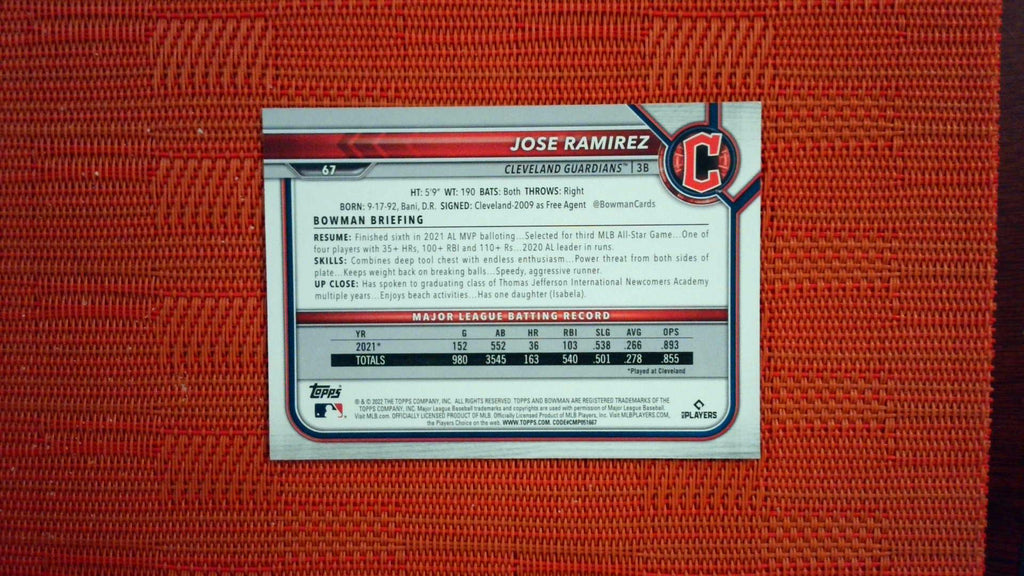 2022 Bowman Blue Border #67 Jose Ramirez 10/150 Baseball