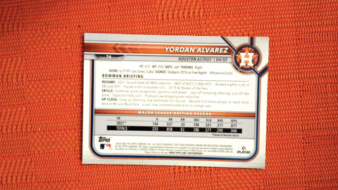 This is a nice example of a 2022 Bowman Chrome #36 Yordan Alvarez .