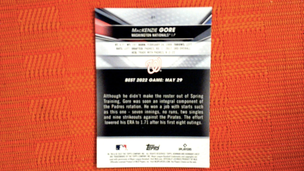 This is a nice example of a 2022 Bowman's Best #61 MacKenzie Gore .