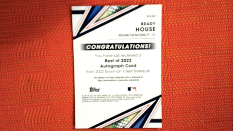 This is a nice example of a 2022 Bowman's Best #B22-BH Brady House Best of 2022 Autographs.