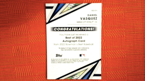 This is a nice example of a 2022 Bowman's Best #B22-DV Daniel Vasquez Best of 2022 Autographs.