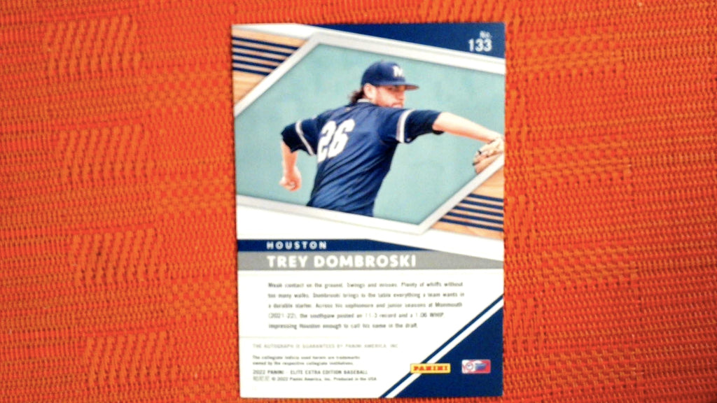 This is a nice example of a 2022 Panini Elite Extra Edition #133 Trey Dombroski Signatures.