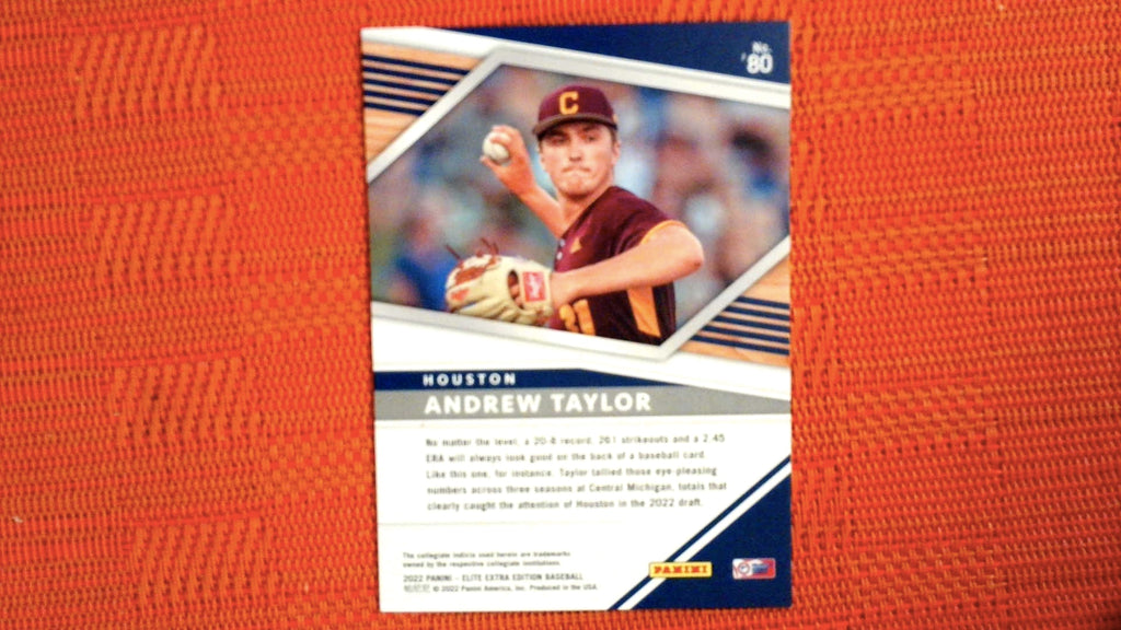 This is a nice example of a 2022 Panini Elite Extra Edition #80 Andrew Taylor Aspirations Blue.