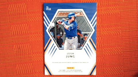 This is a nice example of a 2022 Panini Elite Extra Edition #FT-JJ Josh Jung Future Threads.