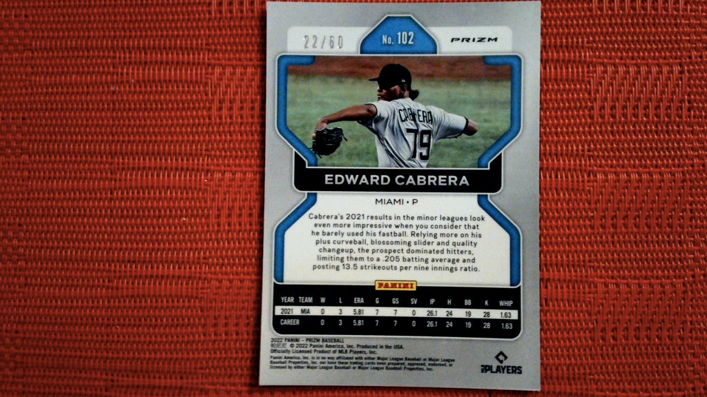 2022 Panini Prizm Baseball Blue Wave #102 Edward Cabrera 22/60 Rookie