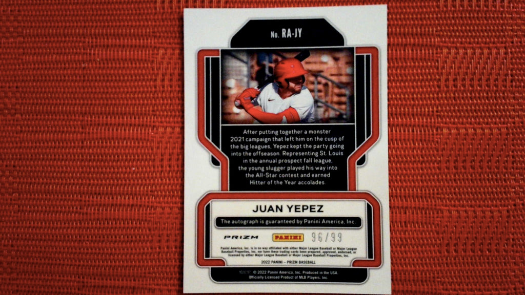 2022 Panini Prizm Baseball Red Rookie Aurographs #RA-JY Juan Yepez 96/99