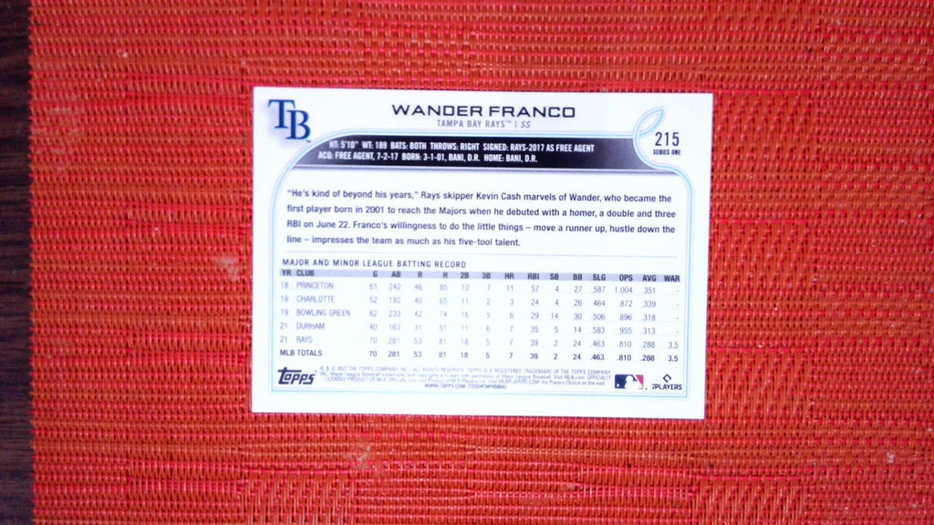 This is a nice example of a 2022 Topps #215 Wander Franco .