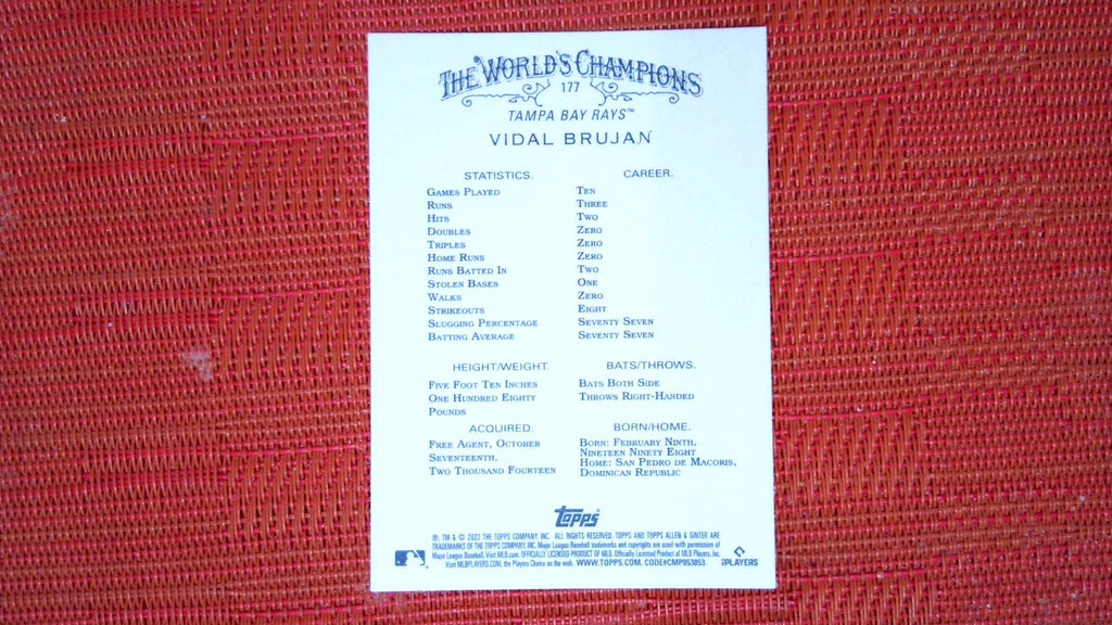 In 2022 Vidal Brujan played for the Tampa Bay Rays.