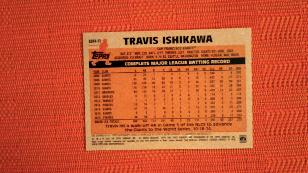2022 Topps Archives Baseball 1983 Fan Favorites Autographs #83FF-TI Travis Ishikawa