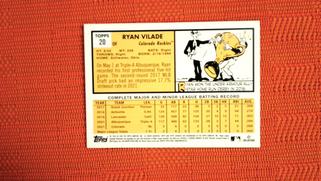 2022 Topps Archives Baseball Rainbow Foil #20 Ryan Vilade 192/199 Rookie
