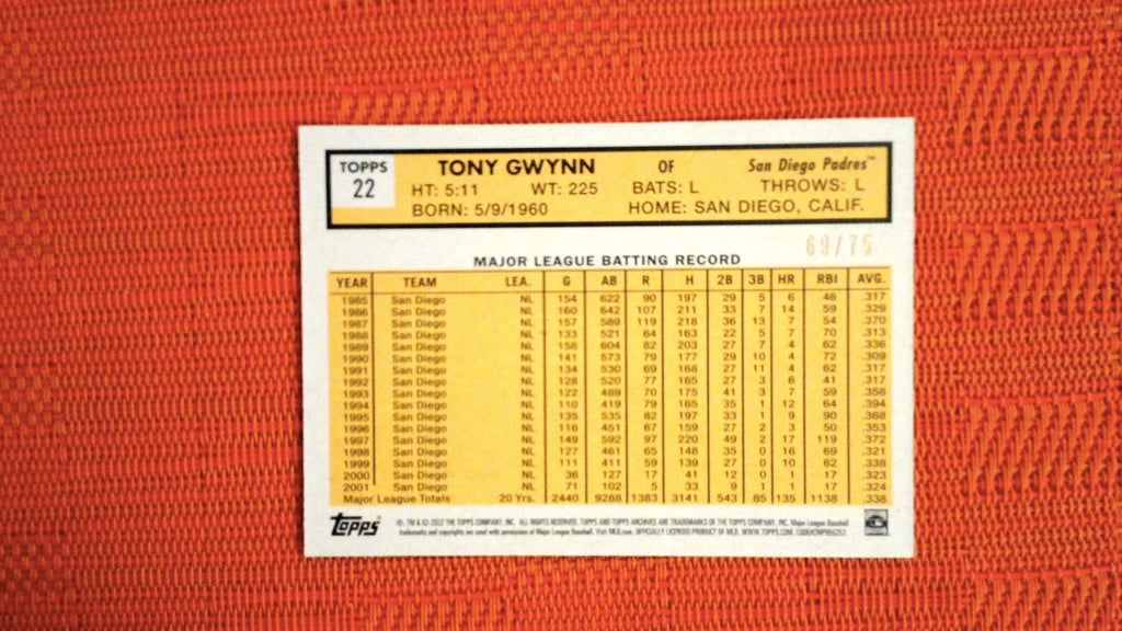 2022 Topps Archives Baseball Red #22 Tony Gwynn 69/75