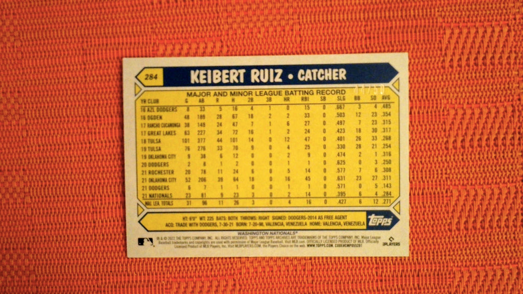 2022 Topps Archives Baseball Red Hot Foil Future Stars Variation #284 Keibert Ruiz 44/50 Rookie