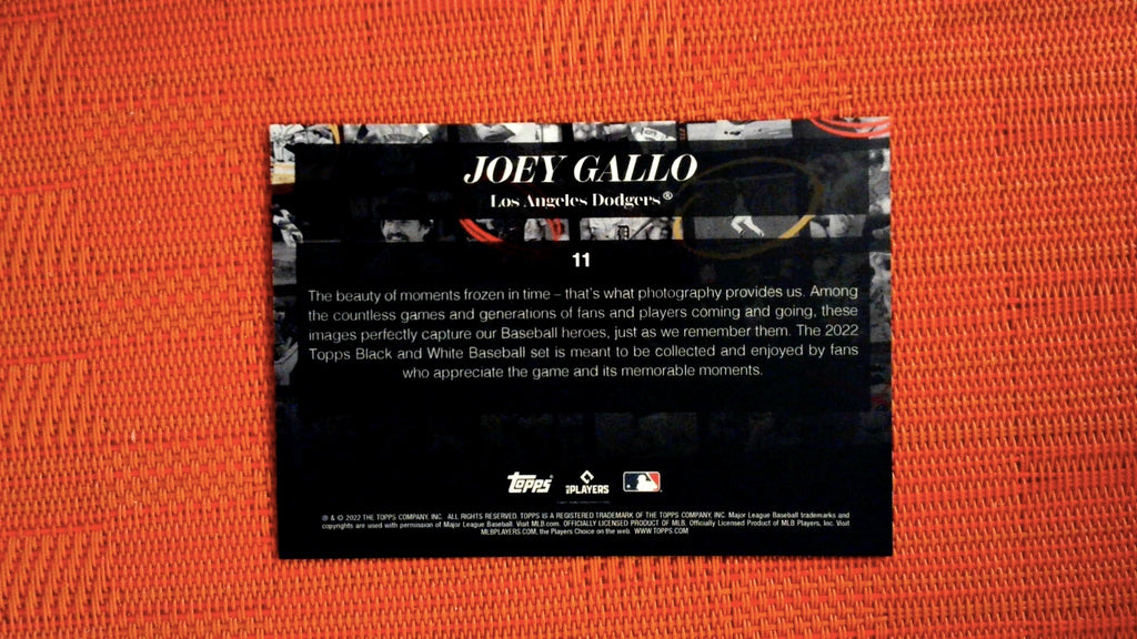 This is a nice example of a 2022 Topps Black & White #11 Joey Gallo .
