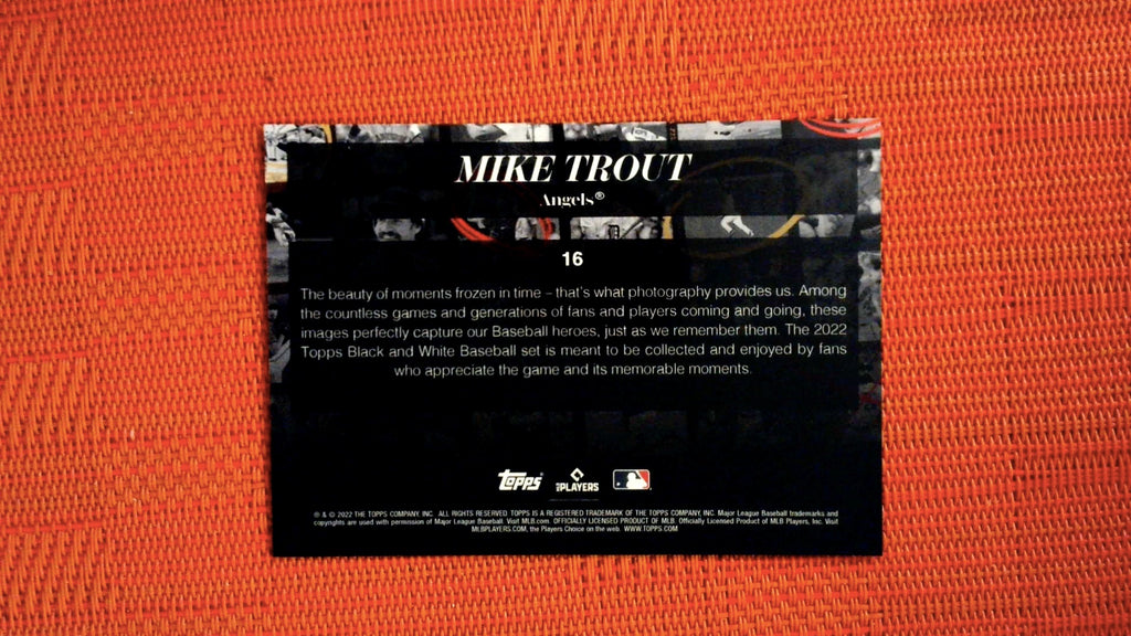 This is a nice example of a 2022 Topps Black & White #16 Mike Trout .