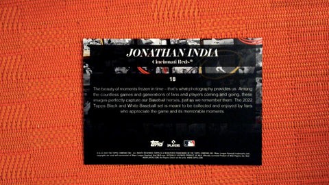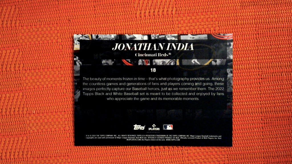 This is a nice example of a 2022 Topps Black & White #18 Jonathan India .