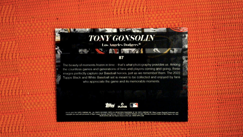 This is a nice example of a 2022 Topps Black & White #87 Tony Gonsolin .
