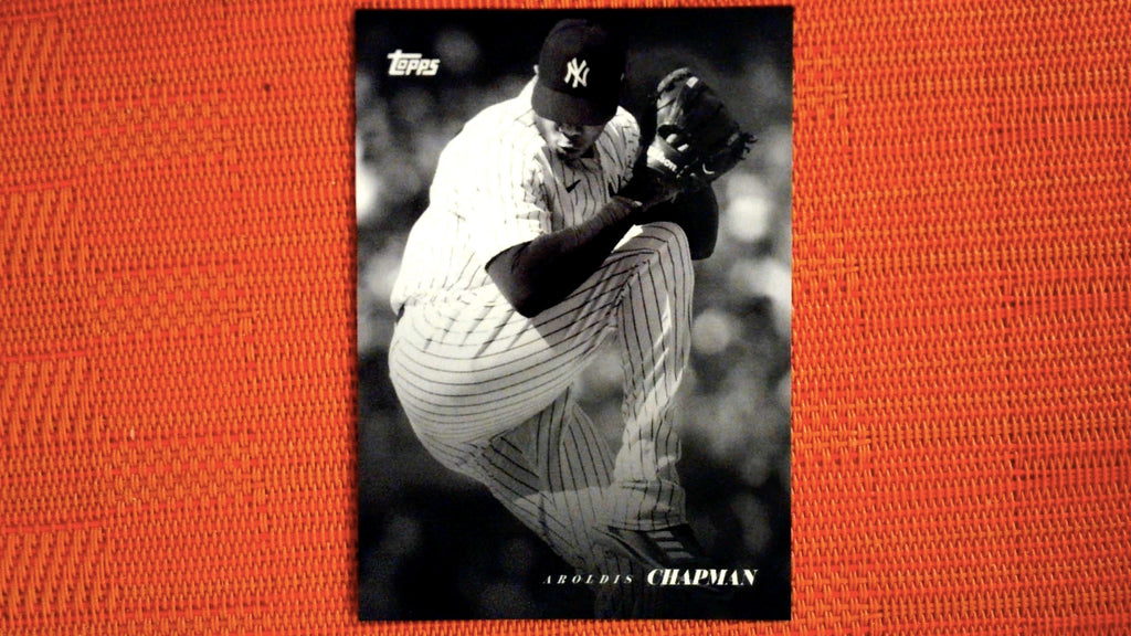 This is a nice example of a 2022 Topps Black & White #89 Aroldis Chapman .