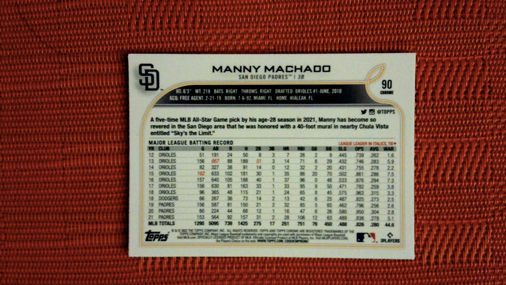 2022 Topps Chrome Baseball Base #90 Manny Machado