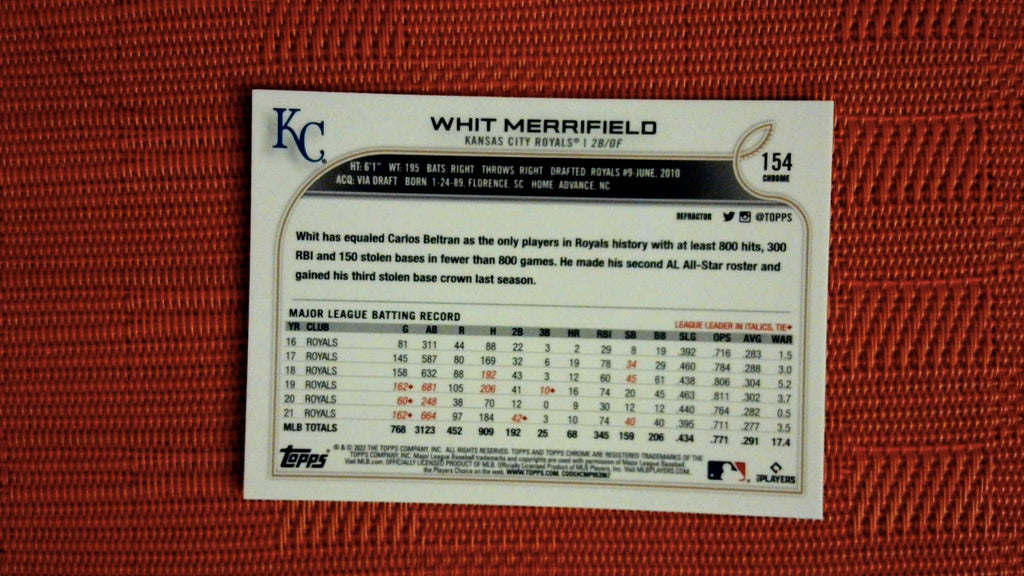 2022 Topps Chrome Baseball Base Refractor #154 Whit Merrifield