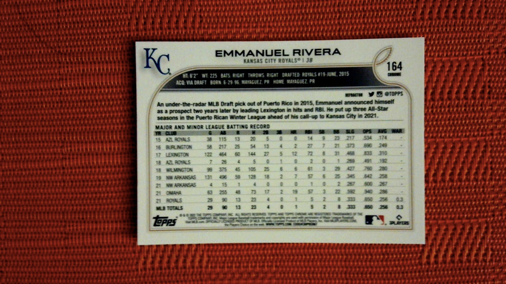 2022 Topps Chrome Baseball Base Refractor #164 Emmanuel Rivera Rookie