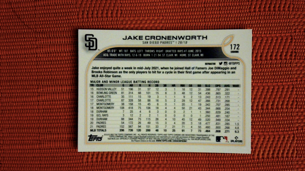 2022 Topps Chrome Baseball Base Refractor #172 Jake Cronenworth