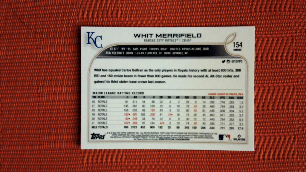 2022 Topps Chrome Baseball Prism Refractor #154 Whit Merrifield