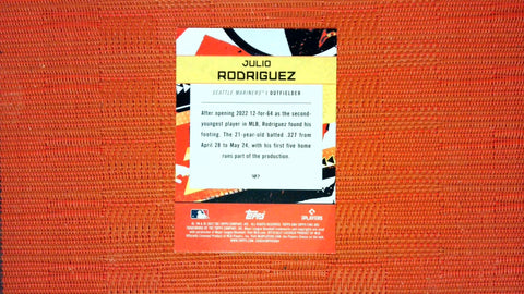 This is a nice example of a 2022 Topps Fire #107 Julio Rodriguez .