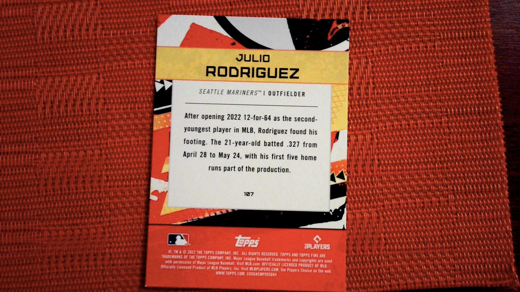 2022 Topps Fire Base #107 Julio Rodriguez Rookie Baseball