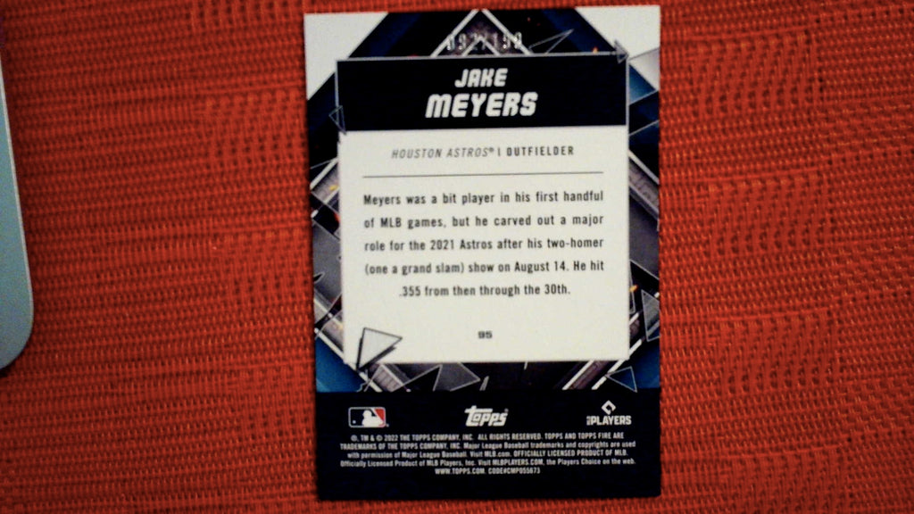 2022 Topps Fire Green #95 Jake Meyers Rookie 92/199